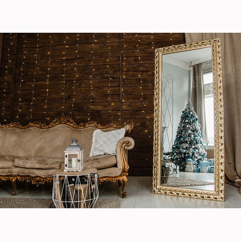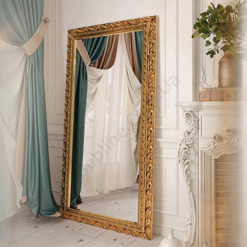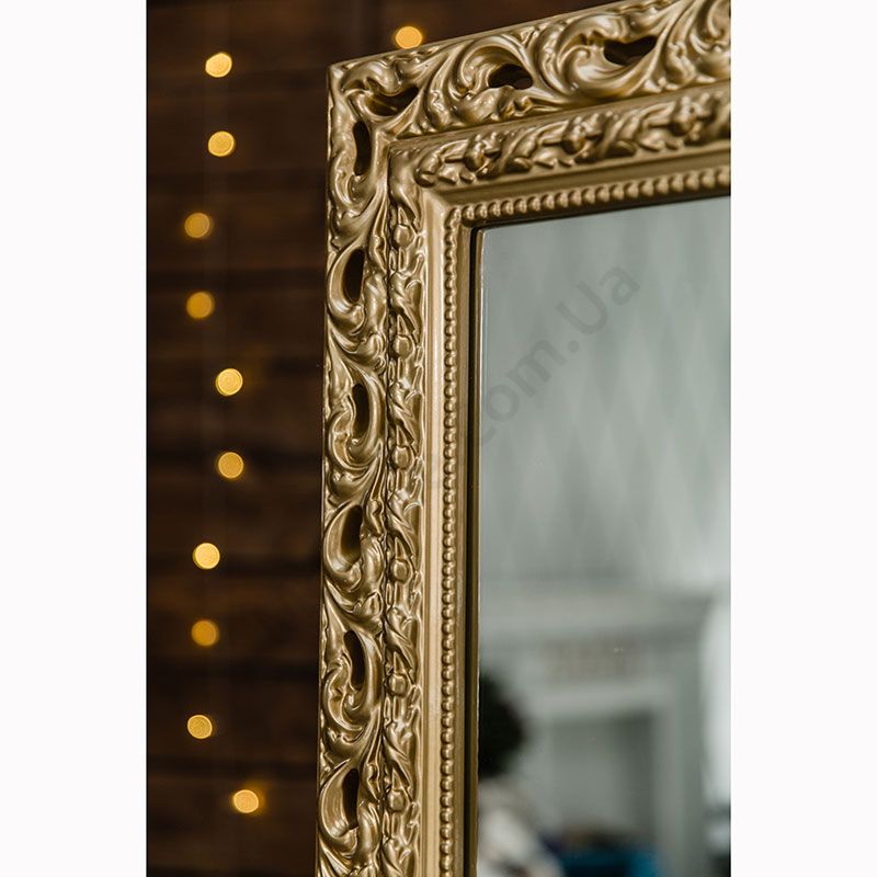 Настінне дзеркало в гарній рамі золотого кольору.