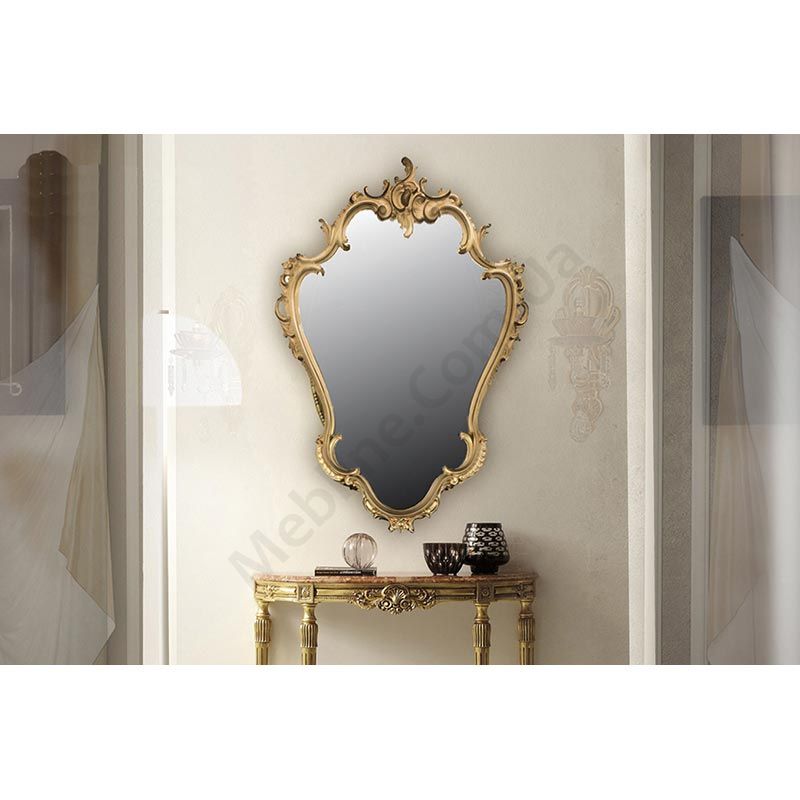 Настінне дзеркало у фігурній рамі золотого кольору.