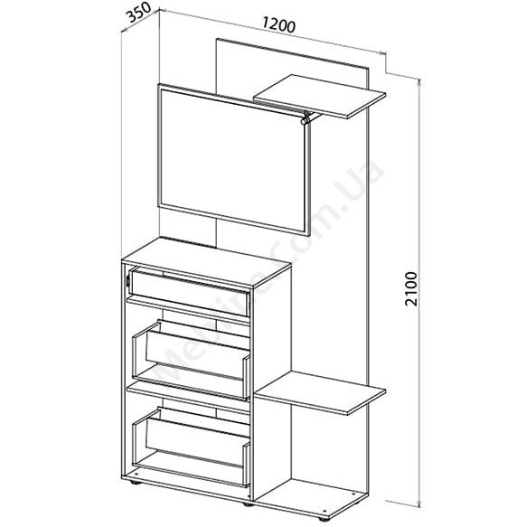 - Тумба для взуття з двома відкидними дверцятами з комірками для взуття.