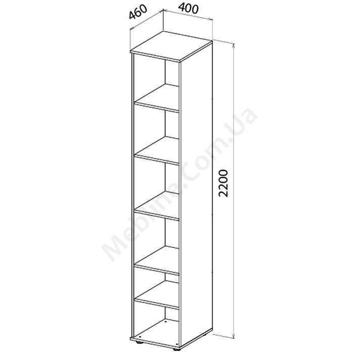 - За верхніми дверцятами три полиці, за нижньою — дві.