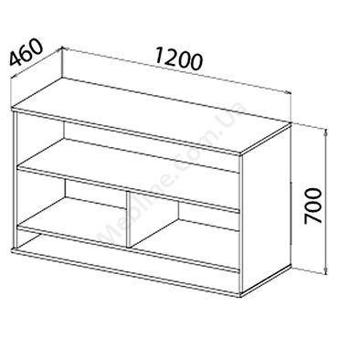 - Навісна шафка з двома відкидними дверцятами та двома відкритими полицями.