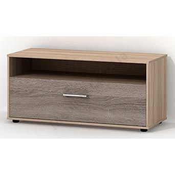 - Тумба під телевізор з висувною шухлядою та відкритою полицею.
