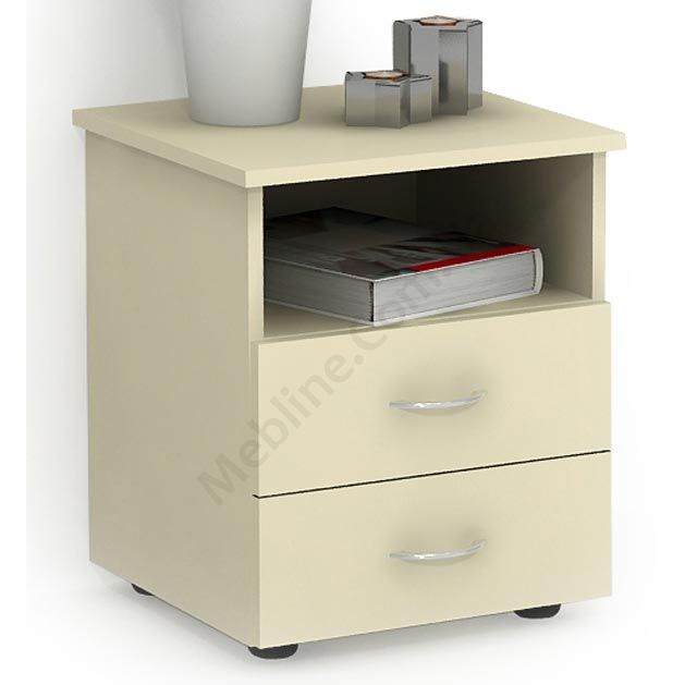 Приліжкова тумба з висувними шухлядами та відкритою полицею.
