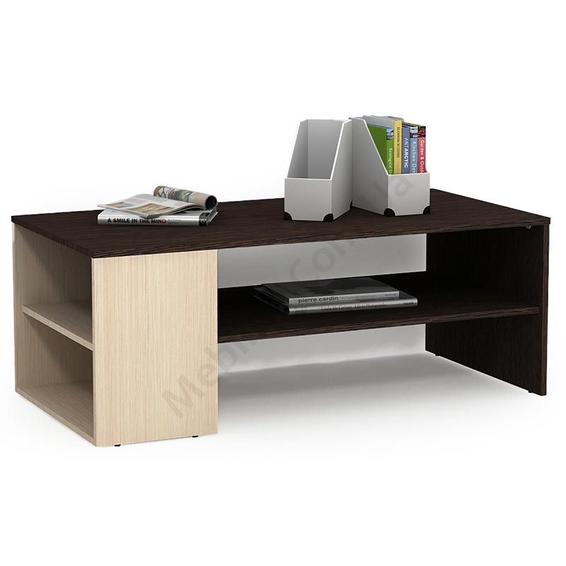 Прямокутний журнальний стіл із поличками.