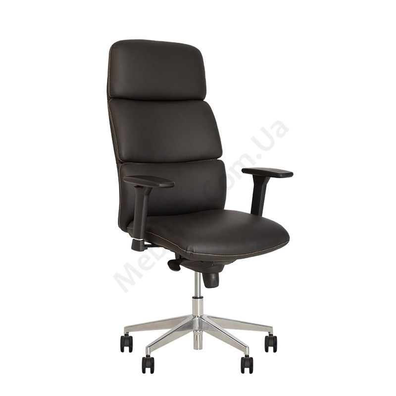 Крісло для керівника зі спинкою з трьох подушок, регульованими підлокітниками, синхромеханізмом, фіксацією в 5 положеннях, на алюмінієвій основі.