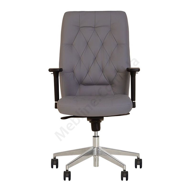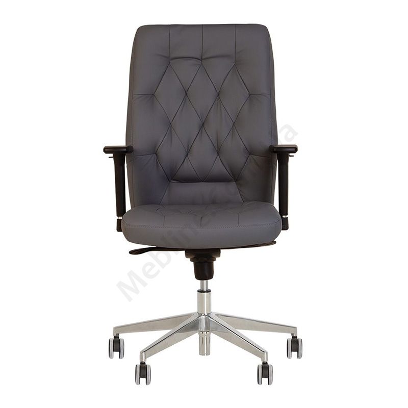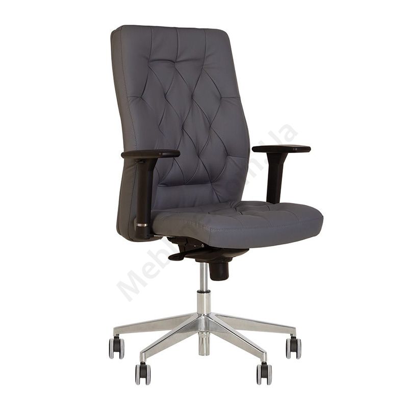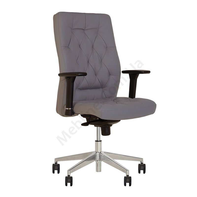 Крісло для керівника з ромбовидною прошивкою, регульованими підлокітниками, синхромеханізмом, фіксацією в 5 положеннях, на алюмінієвій основі.