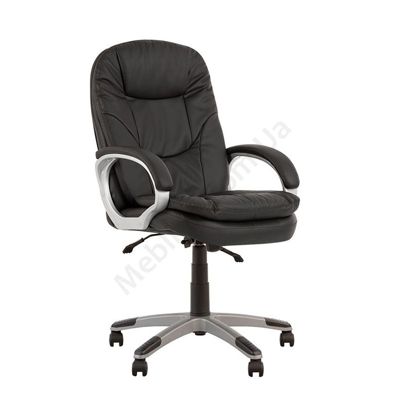 Крісло для керівника з м’якими подушками і підлокітниками, покращеною ергономікою, фіксацією у будь-якому положенні, на пластиковій основі з накладками.