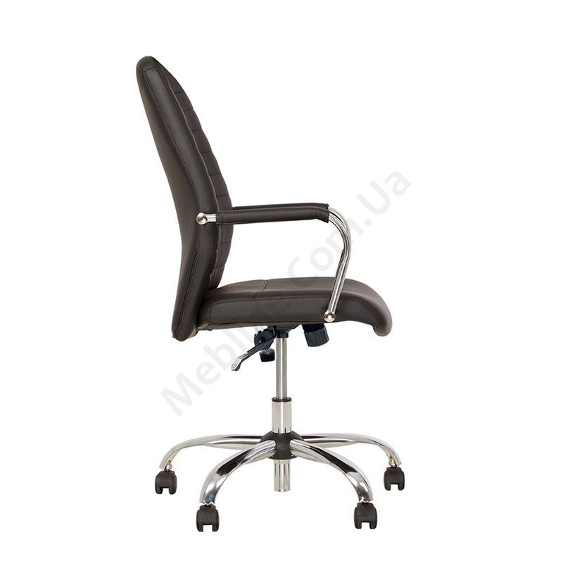 Крісло для керівника в елегантному стилі, з металевими підлокітниками з м’якими накладками, фіксацією у будь-якому положенні, на хромованій основі.