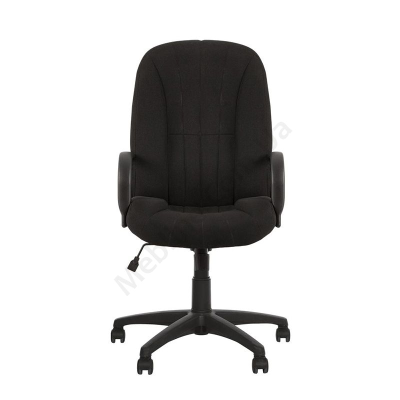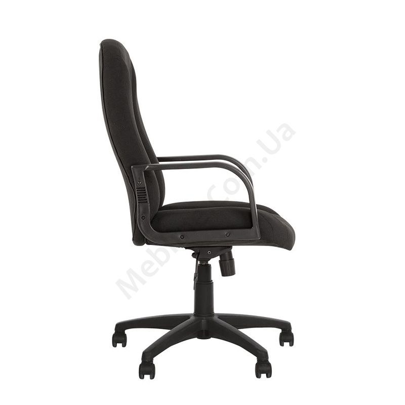 Крісло керівника з широкою спинкою покращеної ергономічності, пластиковим нерегульованими підлокітниками, фіксацією у вертикальному положенні, на пластиковій основі.