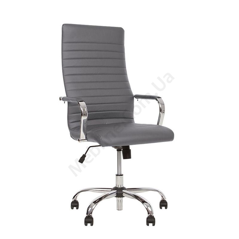 Крісло для керівника з витонченим дизайном, м’якими підлокітниками, фіксацією у вертикальному положенні, на хромованій основі.