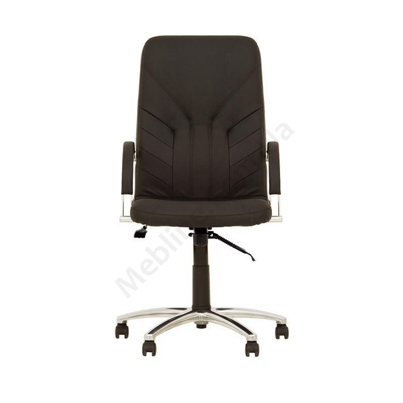 Базове крісло керівника, м’якими підлокітниками, фіксацією в будь-якому положенні, на алюмінієвій основі.