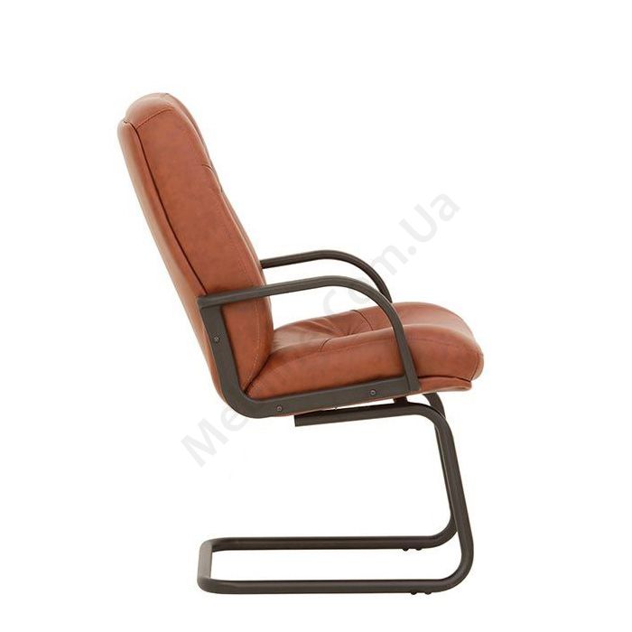 Крісло для конференцій в класичному стилі, низькою спинкою, пластиковими підлокітниками, на металевій основі.