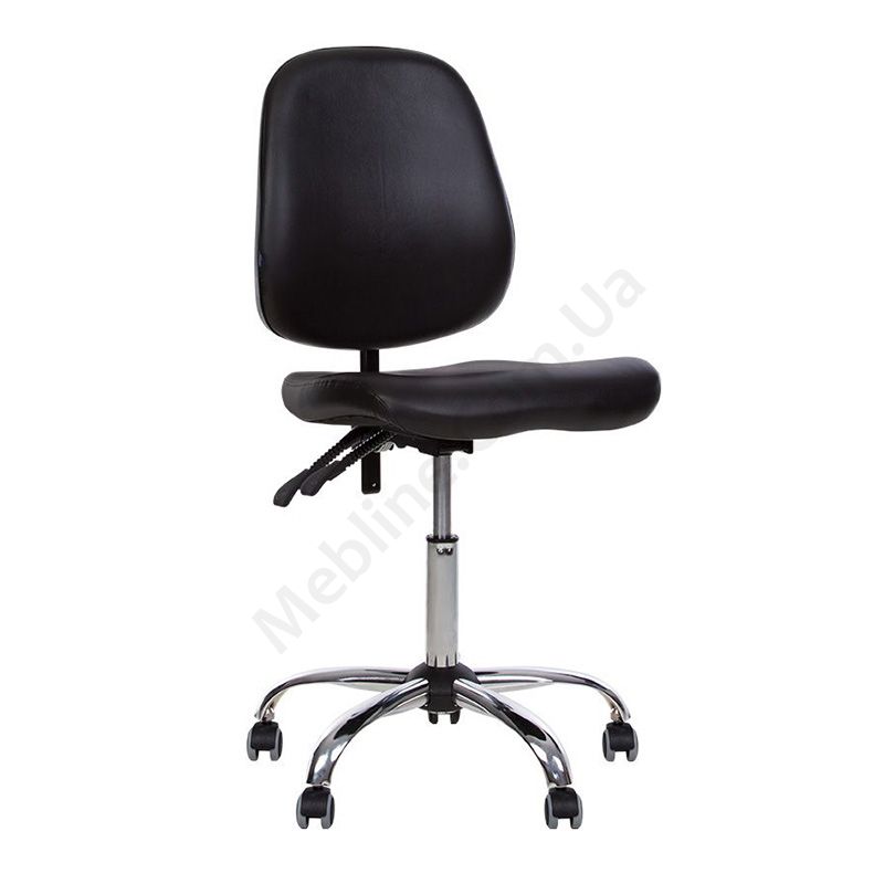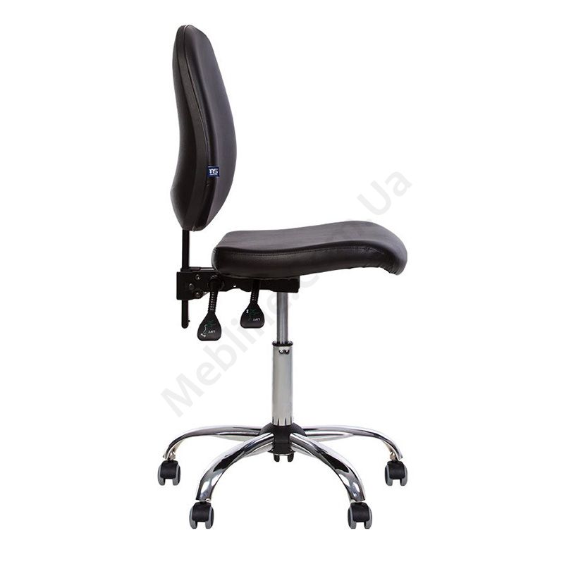Крісло для медичних установ без підлокітників, з фіксацією в будь-якому положенні, на хромованій основі.