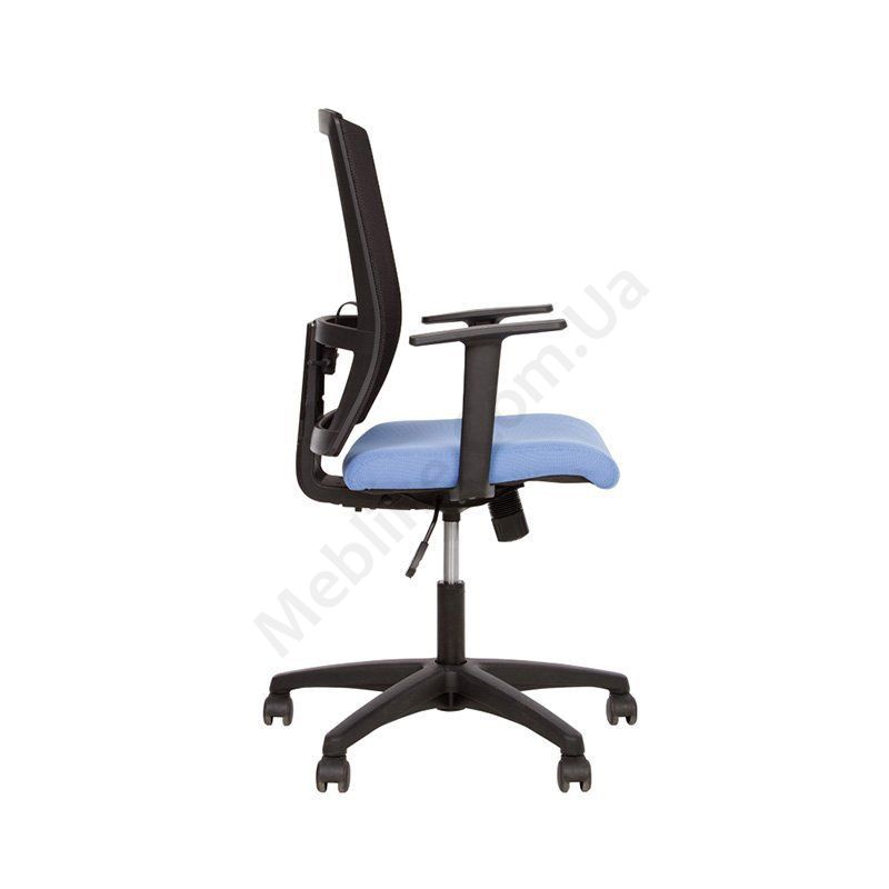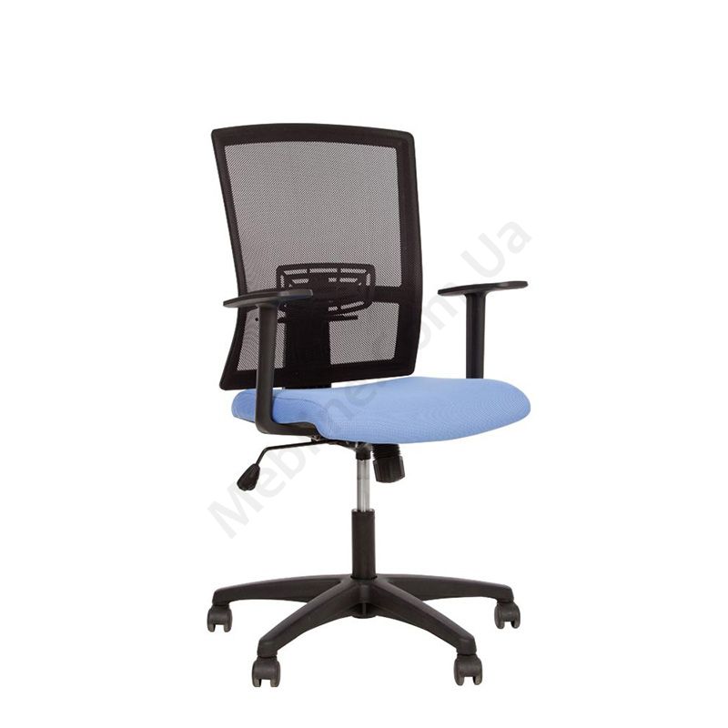 Ергономічне операторське крісло з дихаючою спинкою з нерегульованими пластиковими підлокітниками, фіксацією у вертикальному положенні, на пластиковій основі.