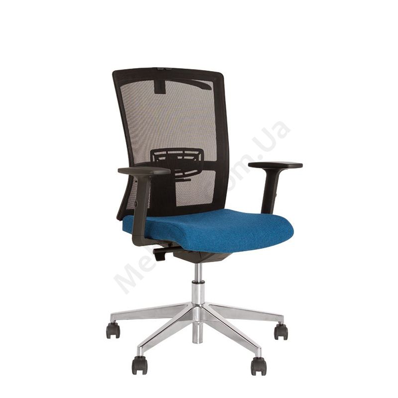 Ергономічне операторське крісло з дихаючою спинкою з регульованими пластиковими підлокітниками, фіксацією у 3 положеннях, на алюмінієвій основі.