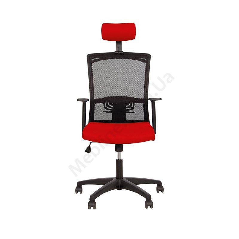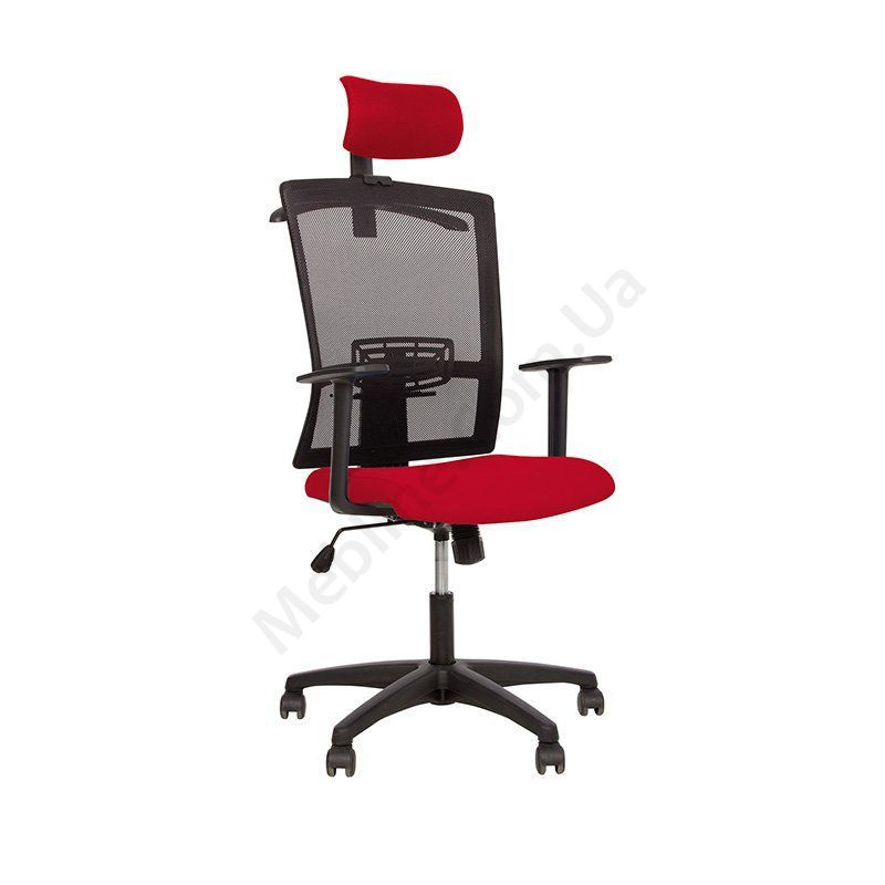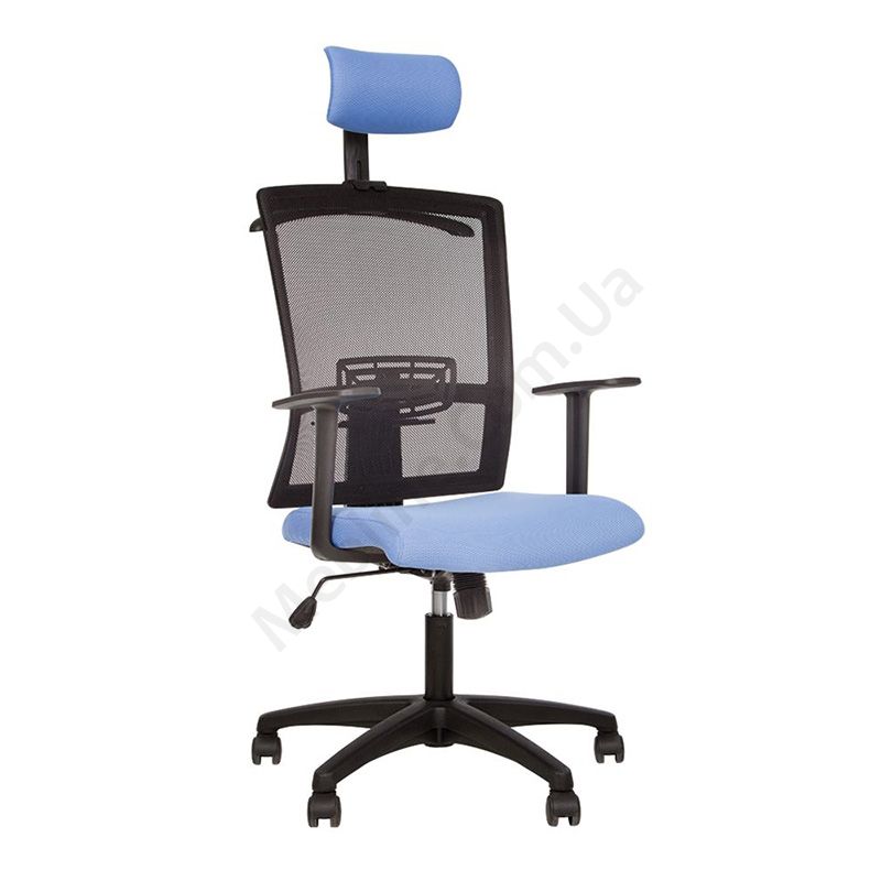 Ергономічне операторське крісло з дихаючою спинкою з нерегульованими пластиковими підлокітниками, регульованим підголівником, фіксацією у вертикальному положенні, на пластиковій основі.