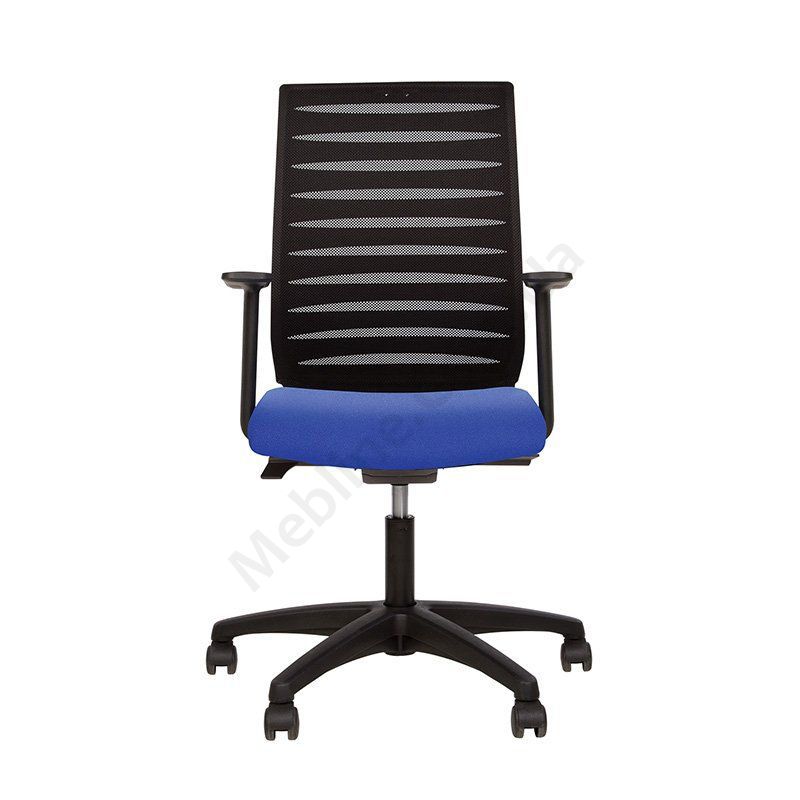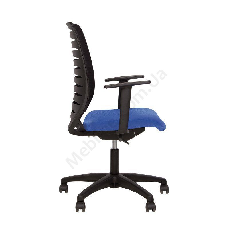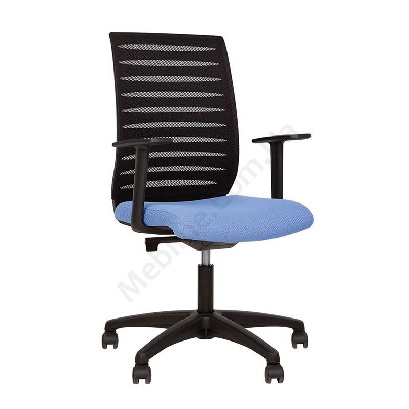Стильне операторське крісло з дихаючою спинкою, нерегульованими пластиковими підлокітниками, фіксацією у 3 положеннях, на пластиковій основі.