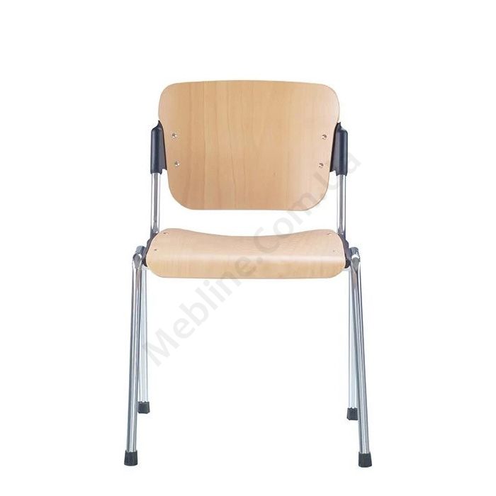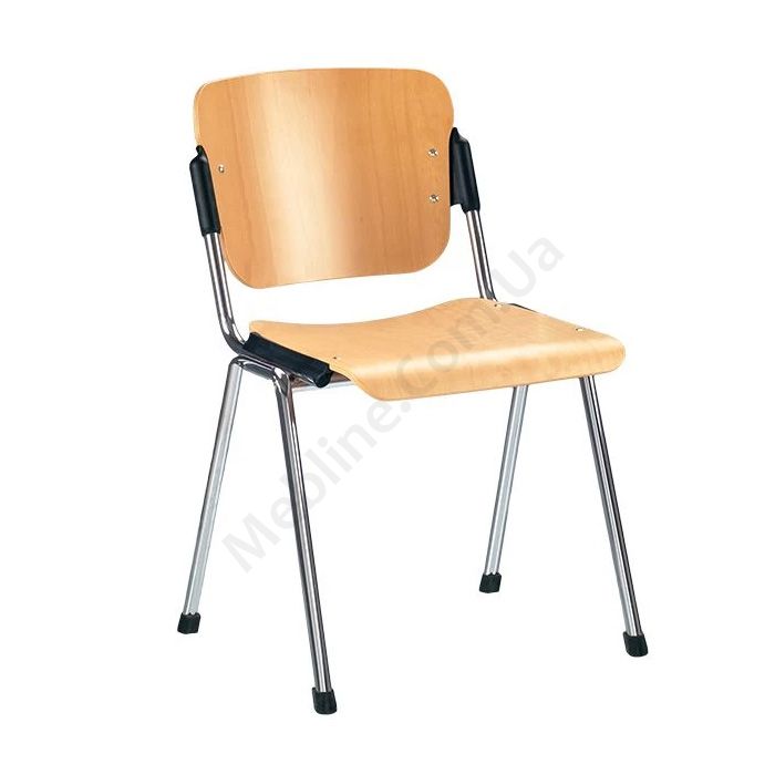 Стілець для відвідувачів з фанерними сидінням та спинкою на хромованому каркасі.