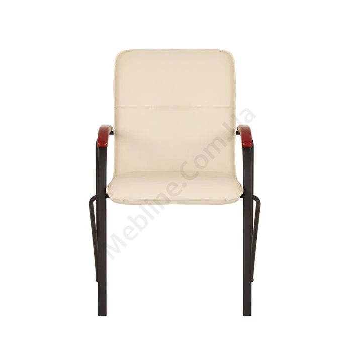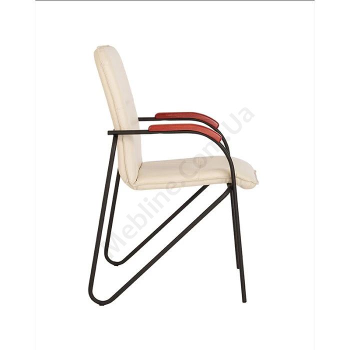 Крісло для конференцій в класичному стилі на чорній металевій базі з дерев’яними накладками на підлокітники.