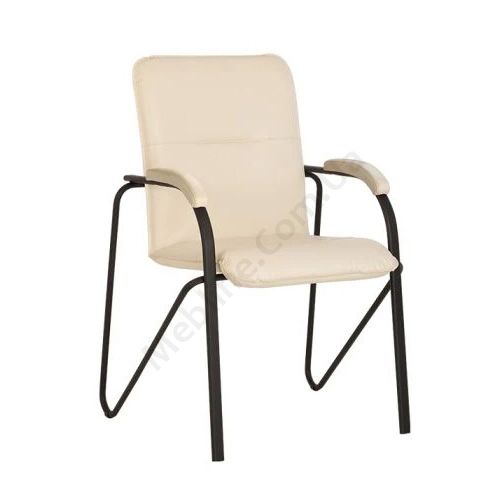 Крісло для конференцій в класичному стилі на чорній металевій базі з м’якими накладками на підлокітники.