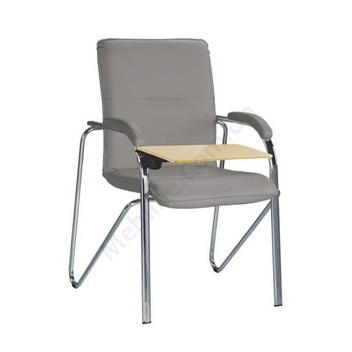Крісло для конференцій в класичному стилі на хромованій базі з м’якими накладками на підлокітники та дерев’яним столиком.