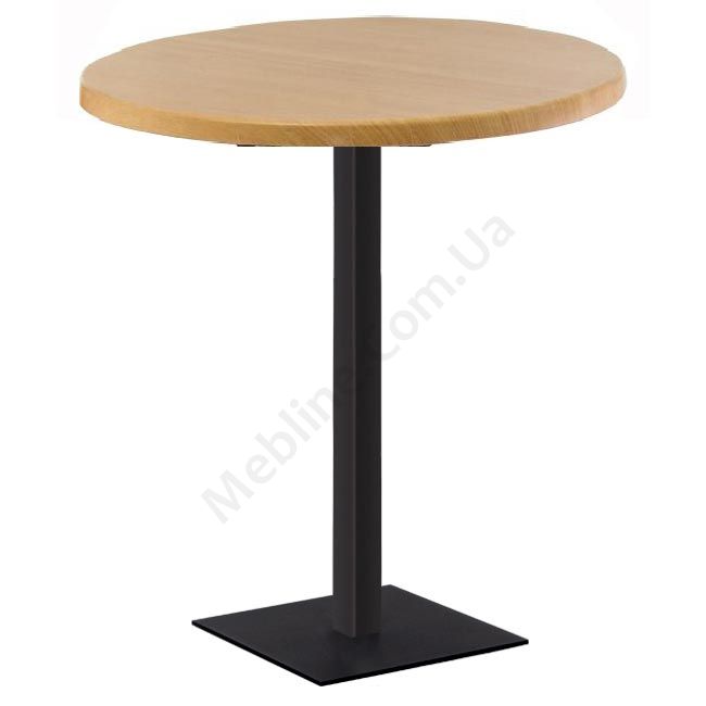 Круглий барний стіл на чорній опорі.