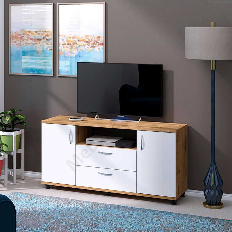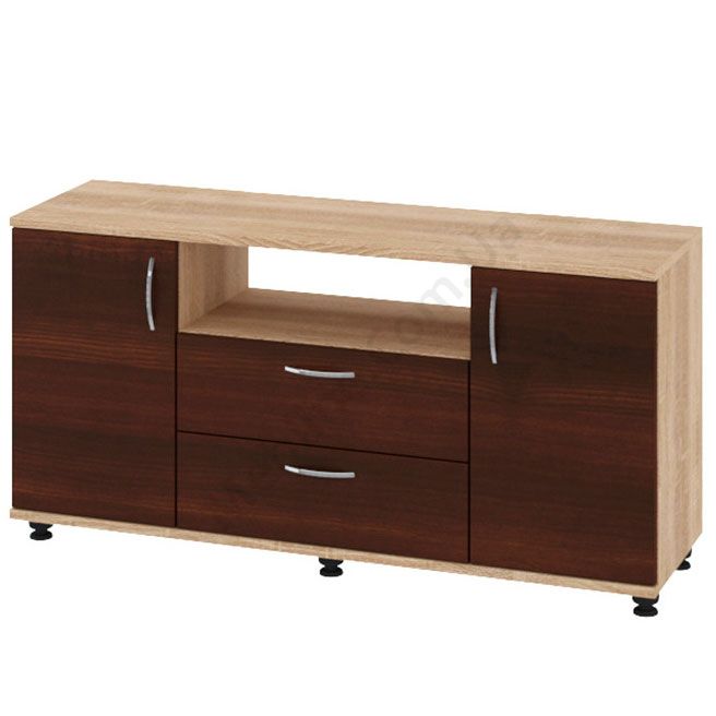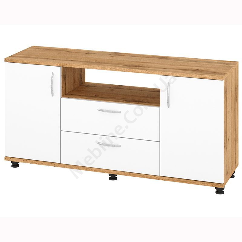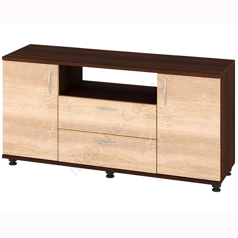 Тумба під телевізор з двома висувними шухлядами, дверцятами і полицею.
