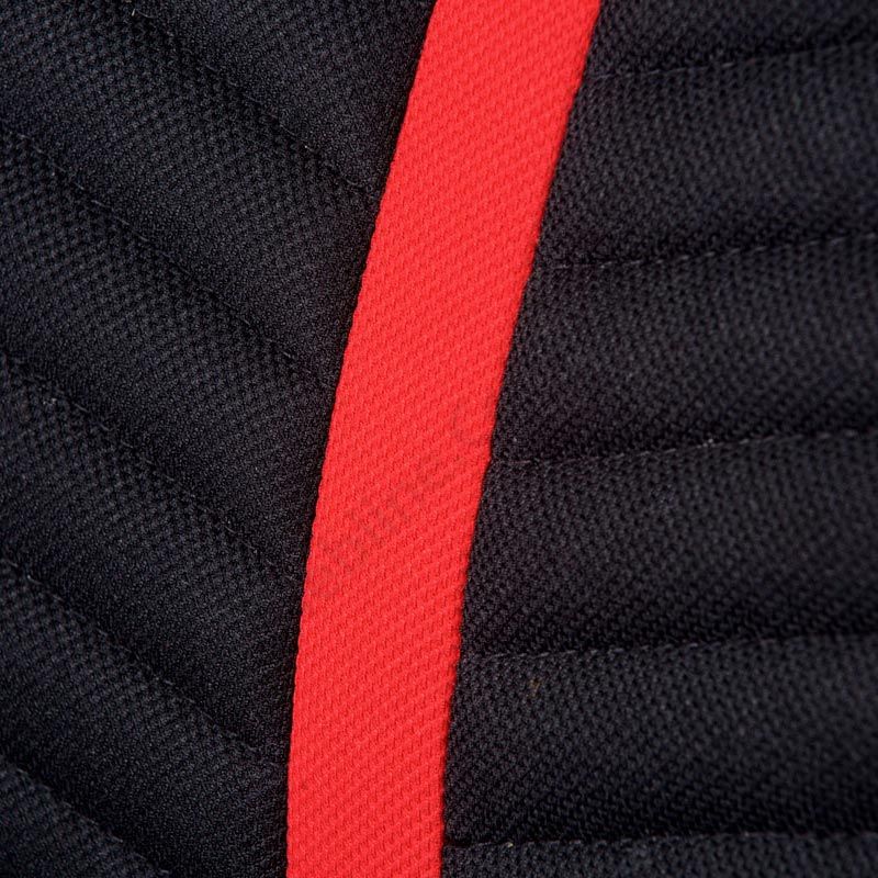 - Сидіння та спинка оббиті чорної меблевою тканиною зі вставками з червоної тканини.