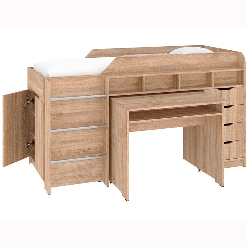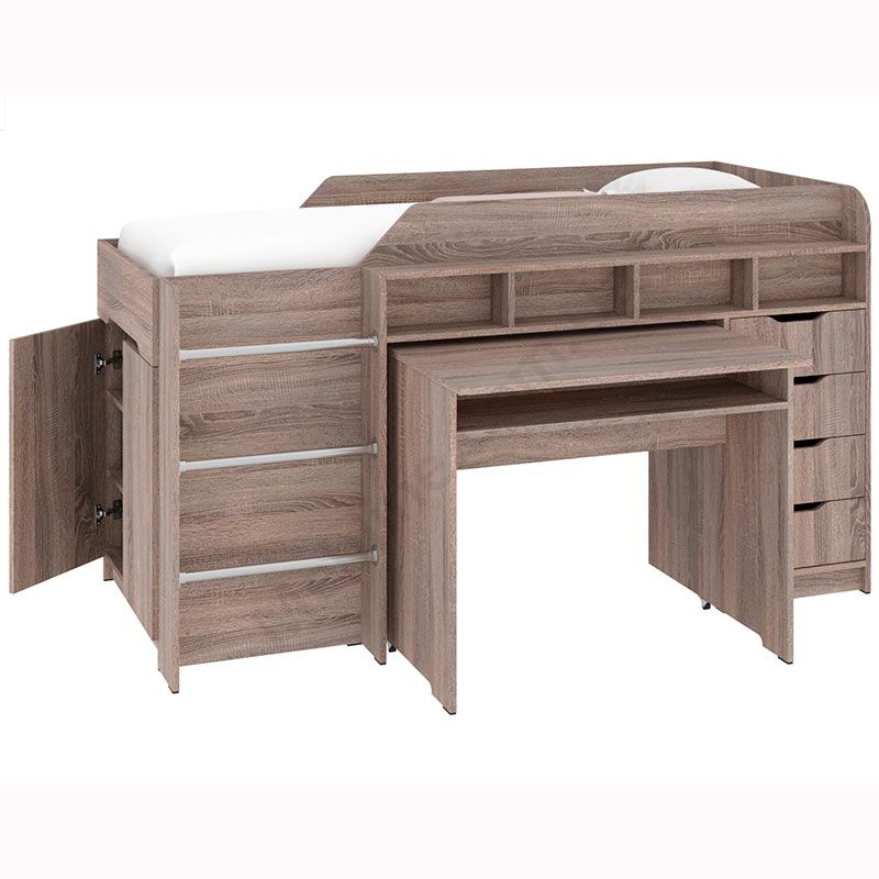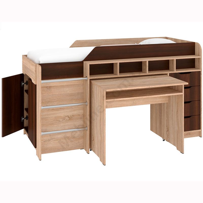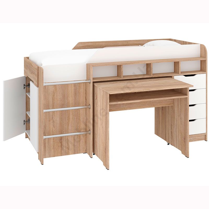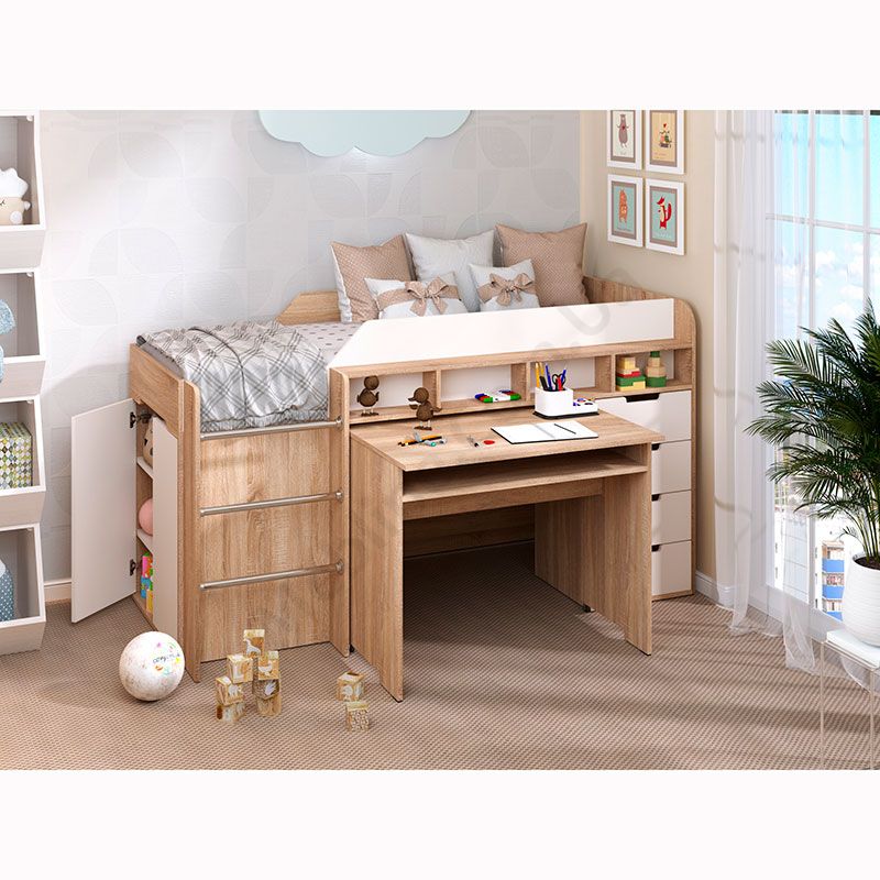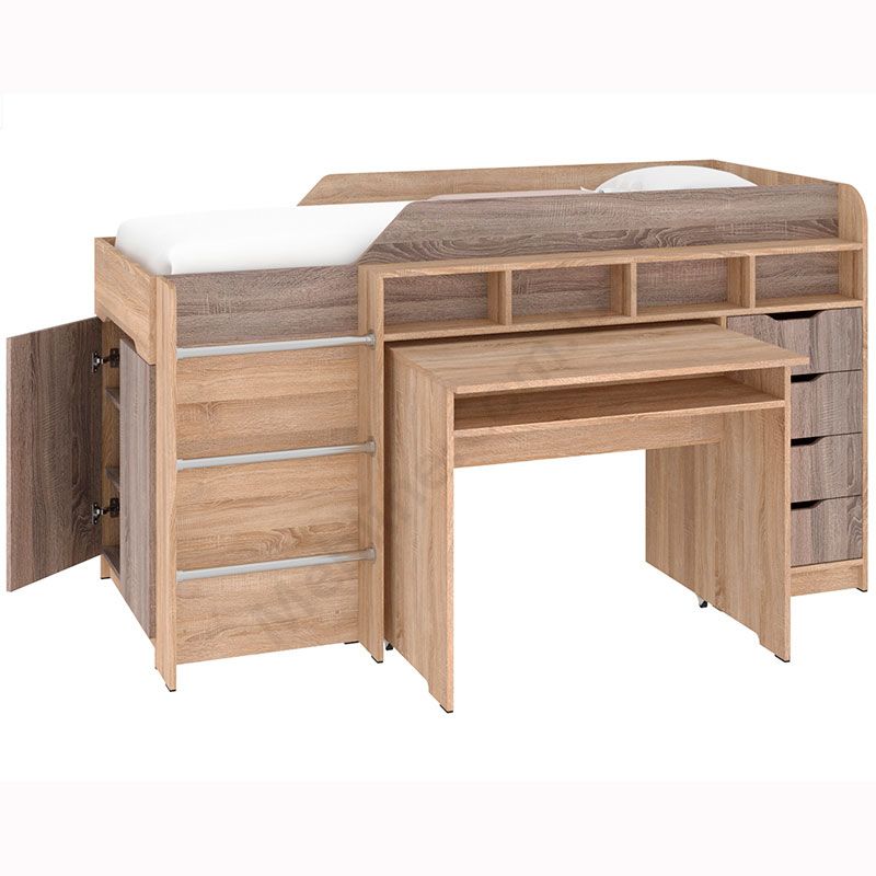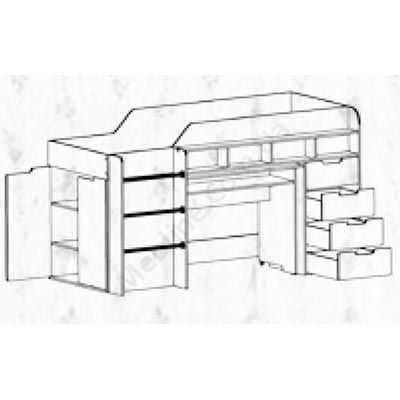 Ліжко-горище зі столом, шафкою і шухлядами.