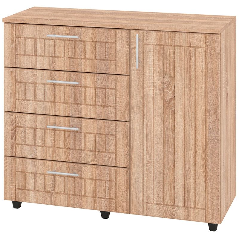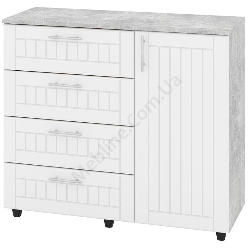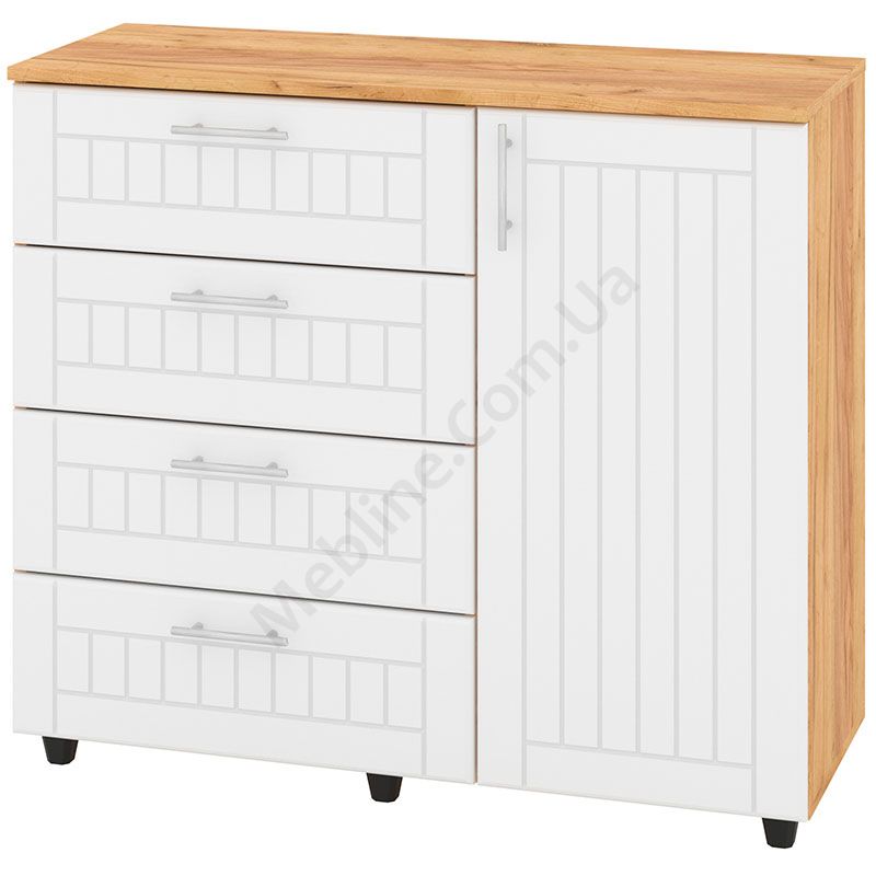 Комод з чотирма висувними шухлядами і дверцятами.