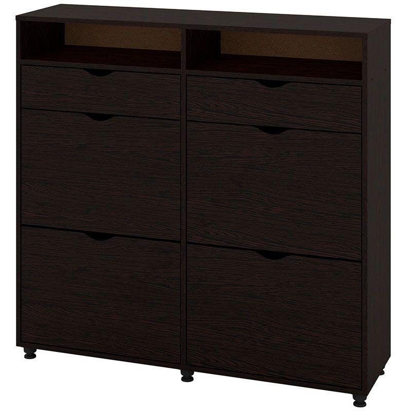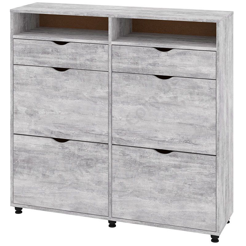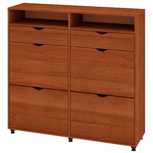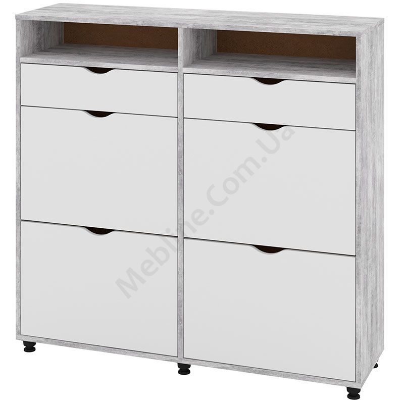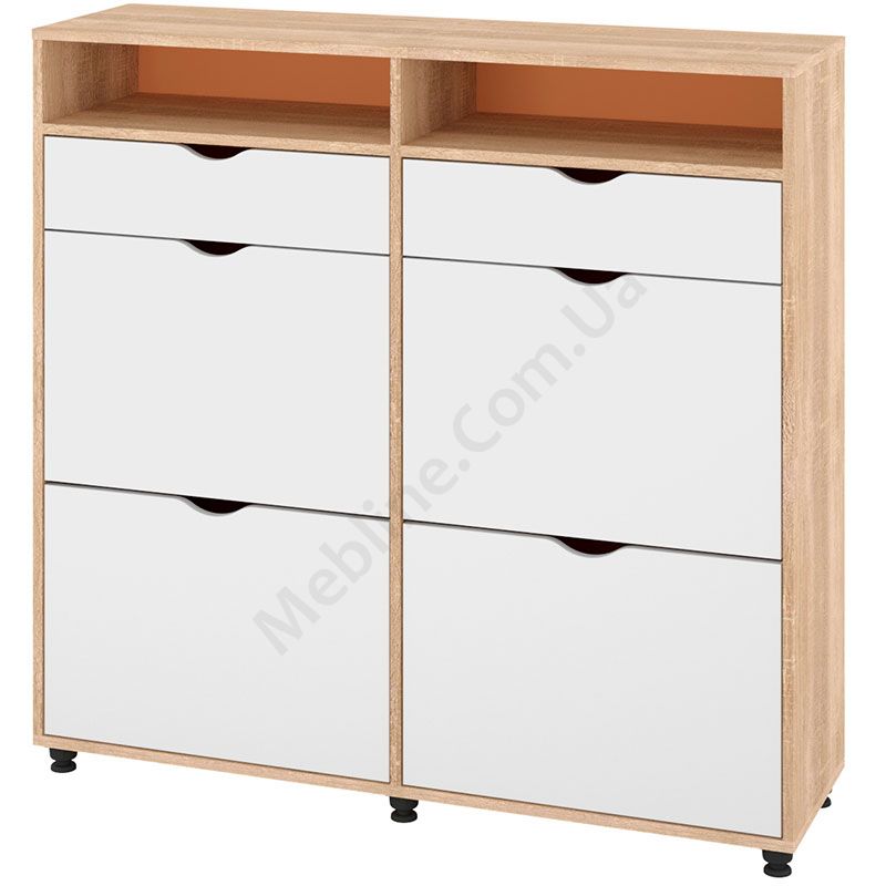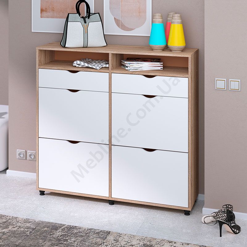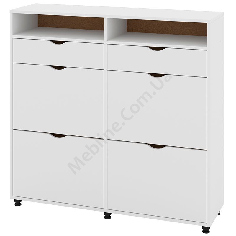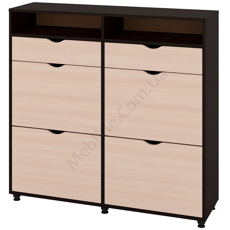 Тумба для взуття з висувними шухлядами та відкритими полицями.