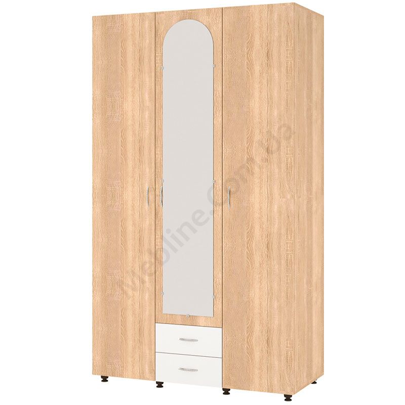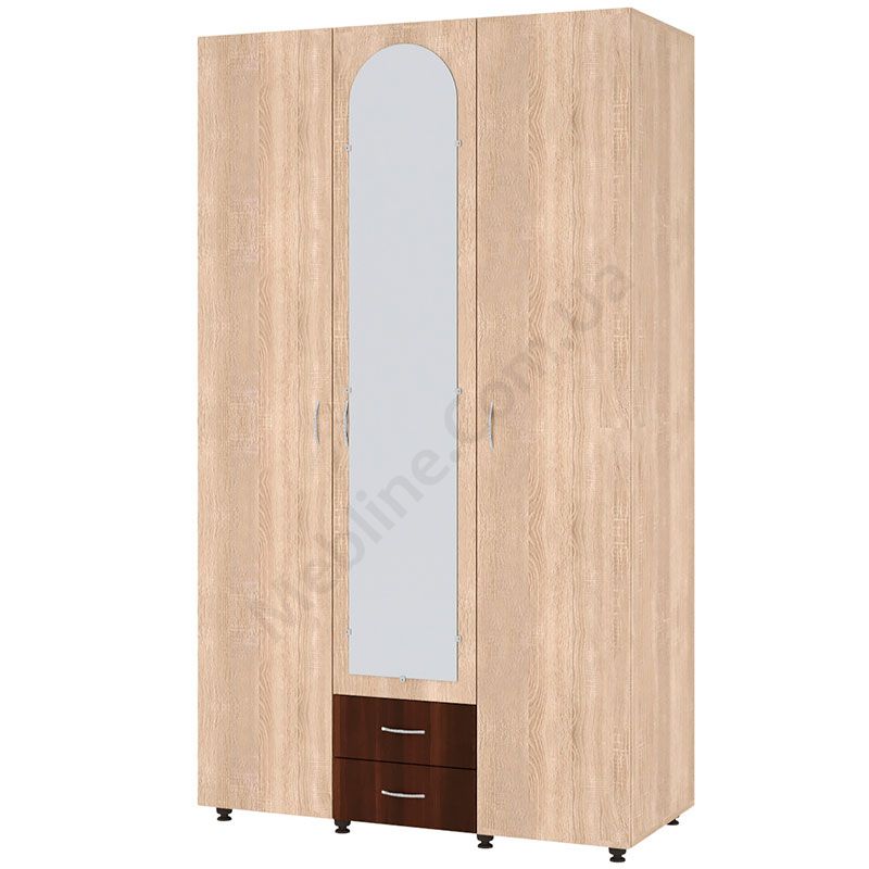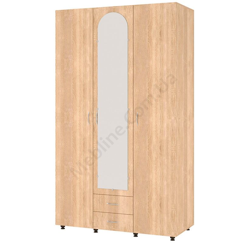 Тридверна шафа з дзеркалом, шухлядами і штангою.