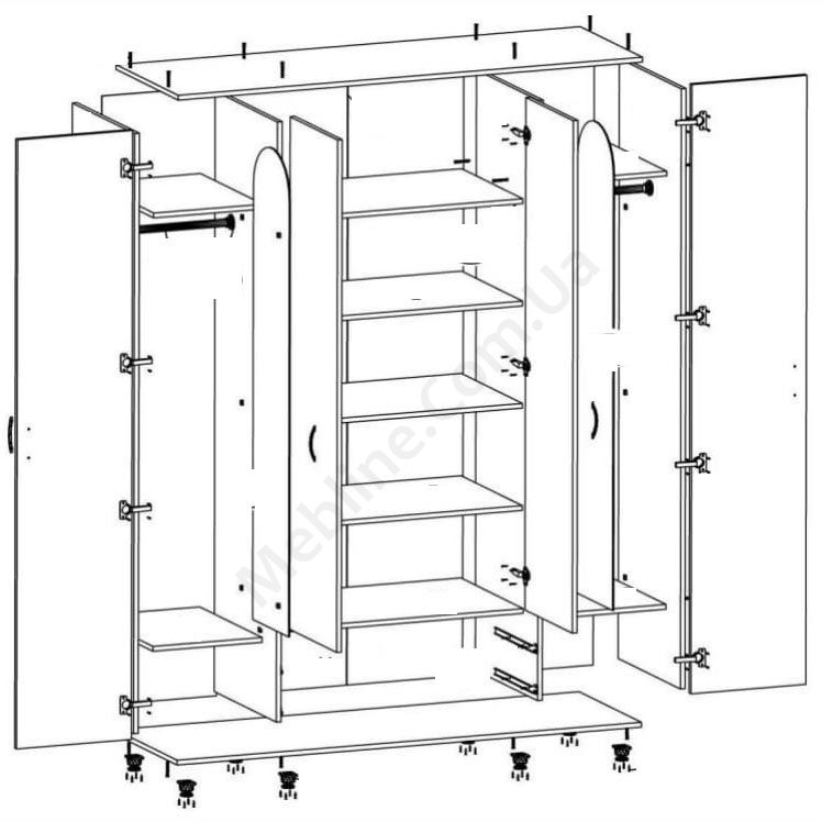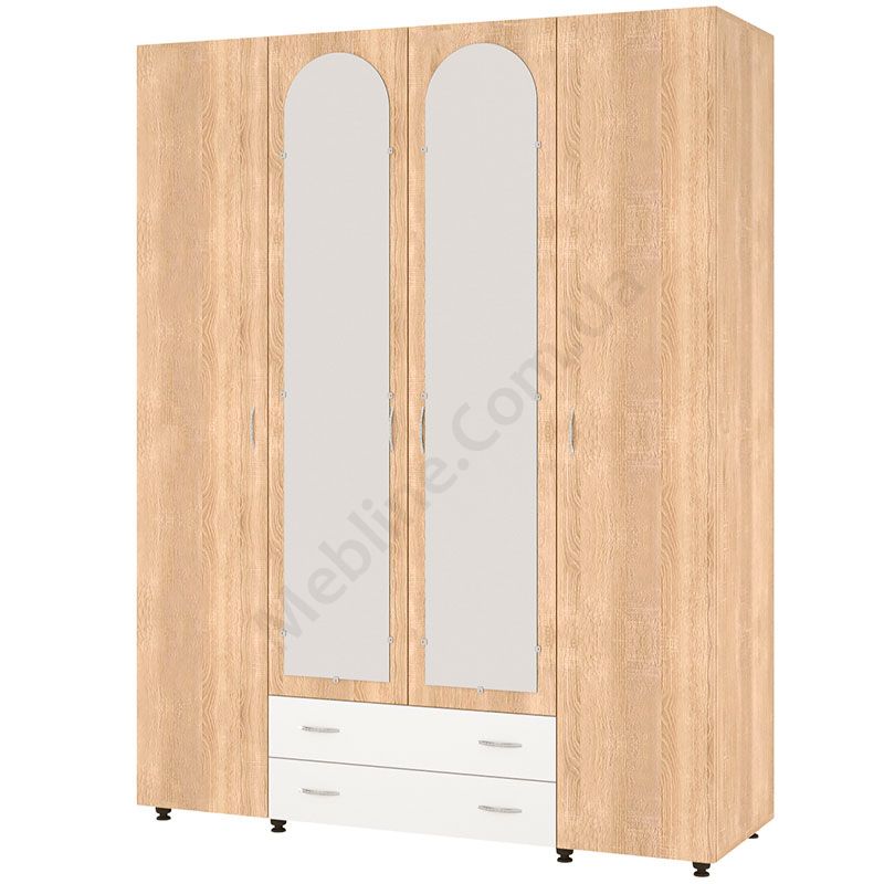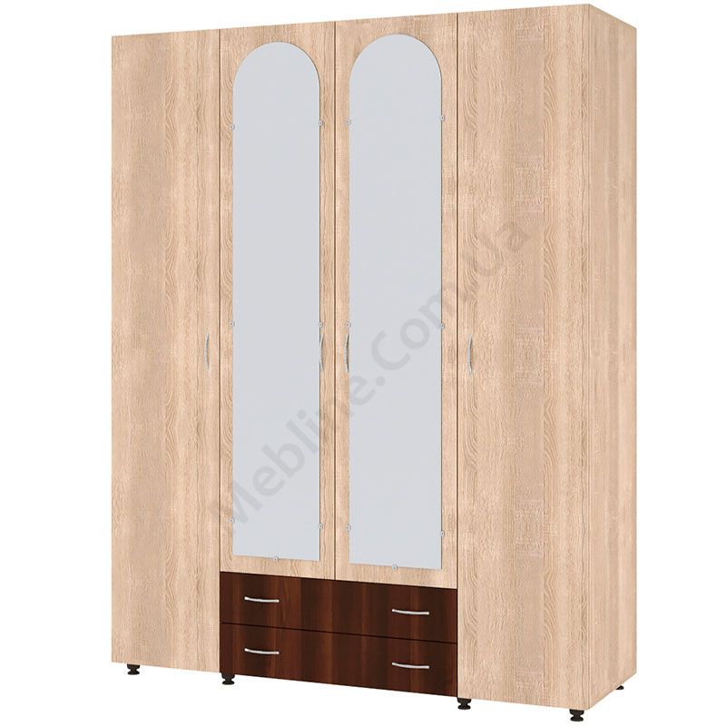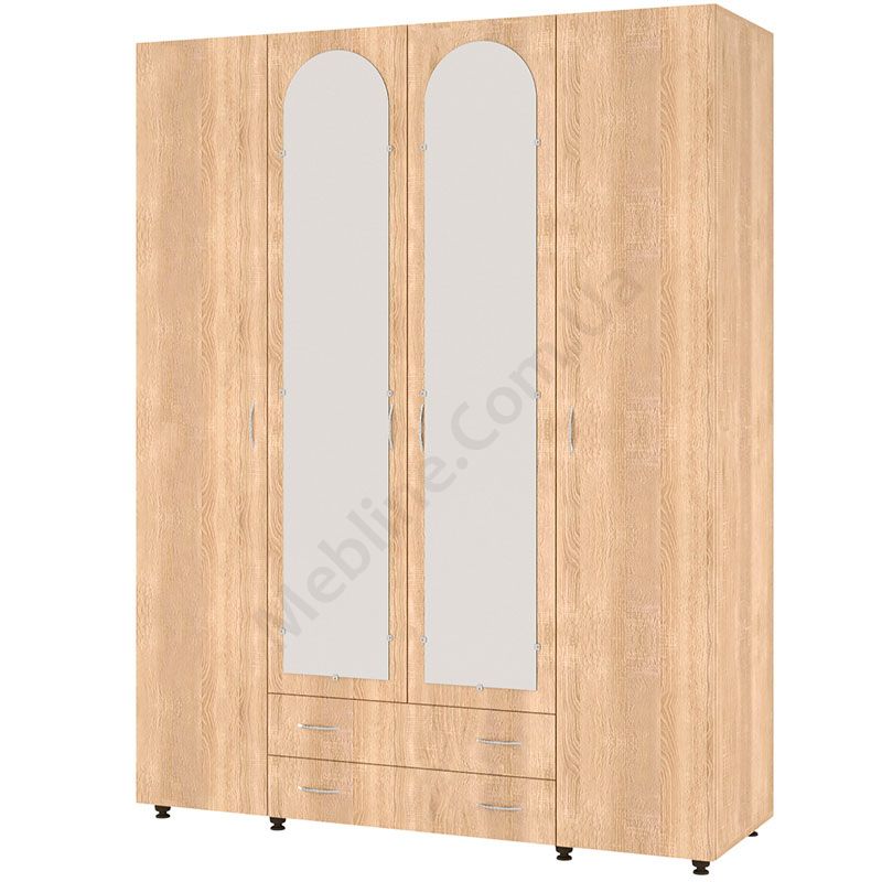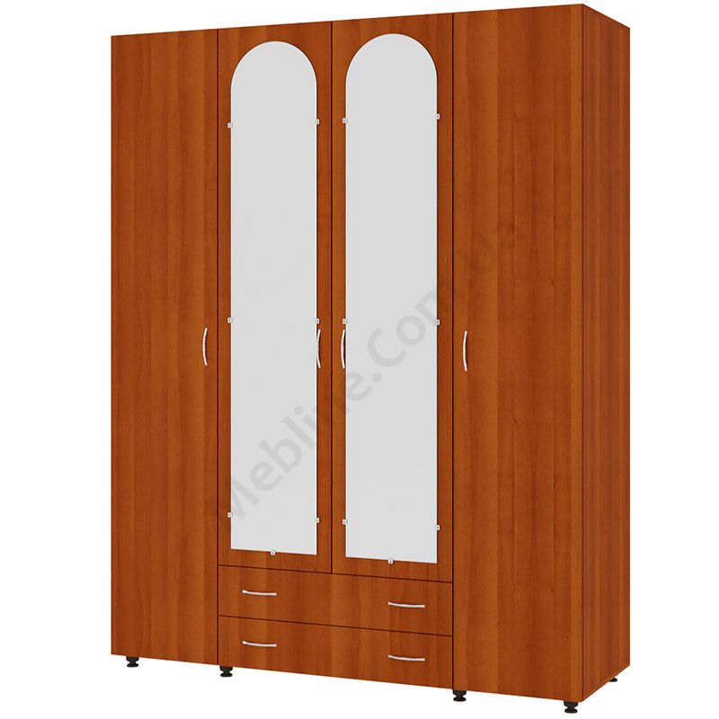 Чотиридверна шафа з дзеркалом, шухлядами і штангою.