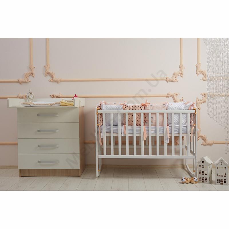 Ліжечко дитяче Ameli з рухомою боковиною та колесами 60х120 фарбована (1В29-1,2,4) - Гойдалка