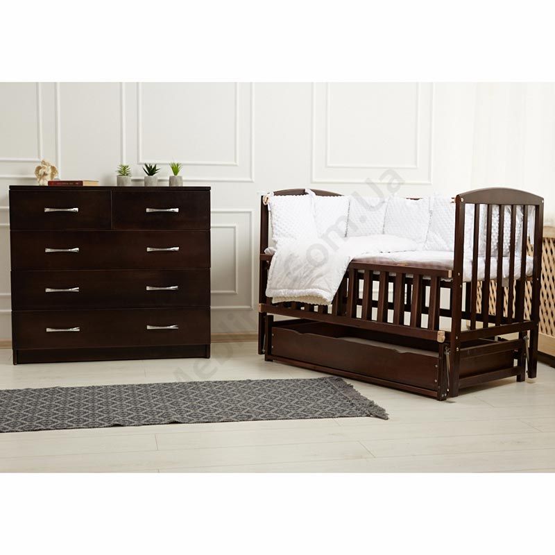 Ліжечко дитяче Valeri з відкидною боковиною з шухлядою на підшипниках 600x1200 (1В220-2 Р)
