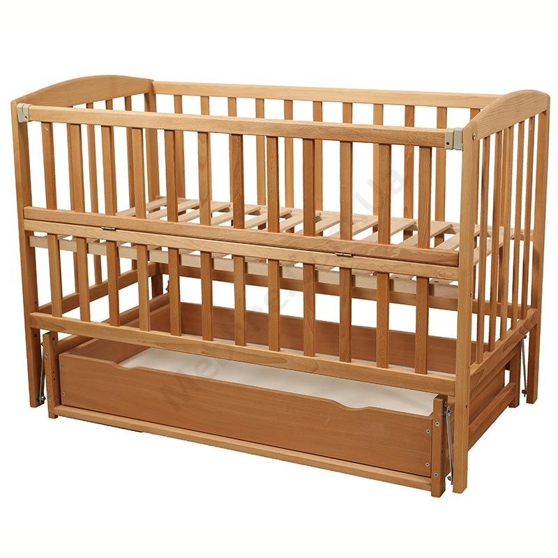Дитяче дерев’яне ліжечко з маятником, відкидною боковиною та ящиком.