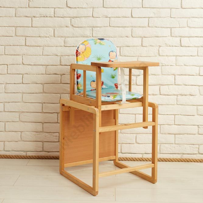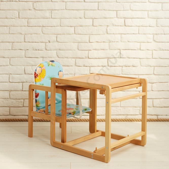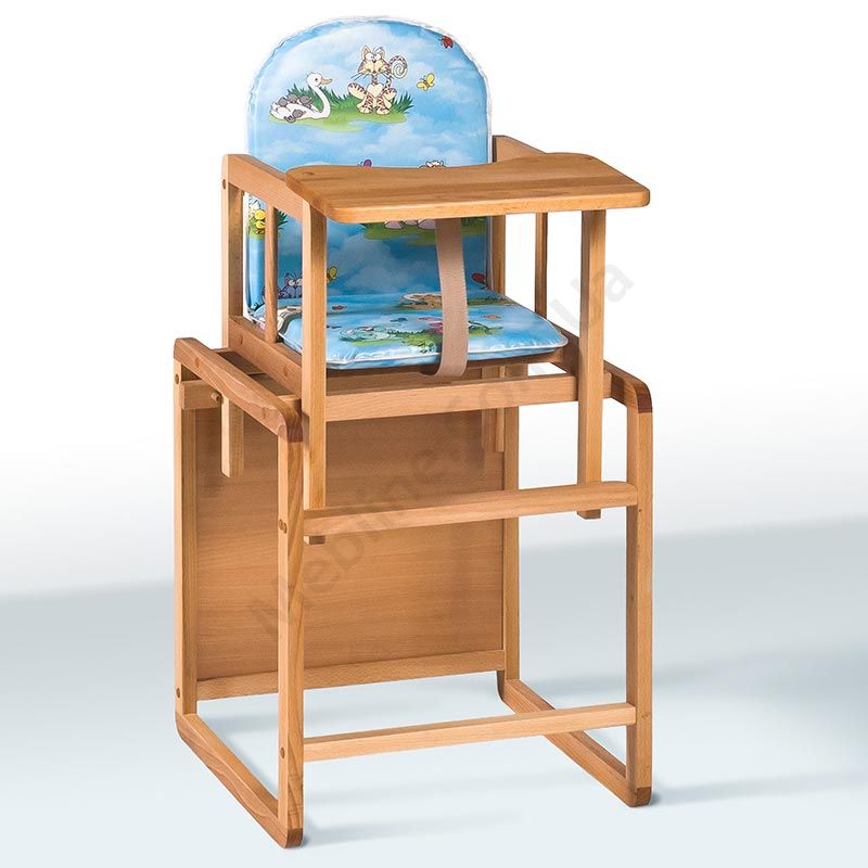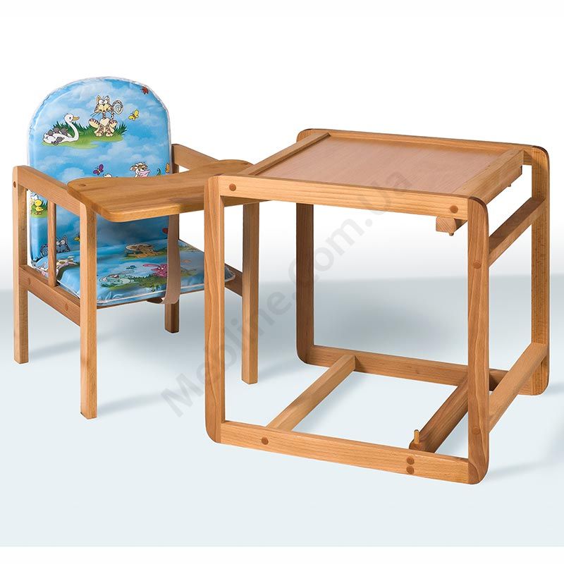 Стільчик трансформер для годування з натурального дерева зі столиком.