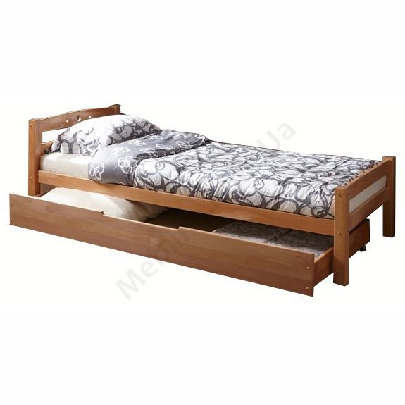 Односпальне дерев’яне ліжко з прямим узголів’ям та шухлядою для білизни.