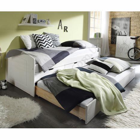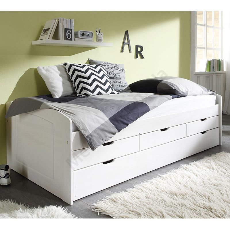 Односпальне дерев’яне ліжко з шухлядами та додатковим спальним місцем.