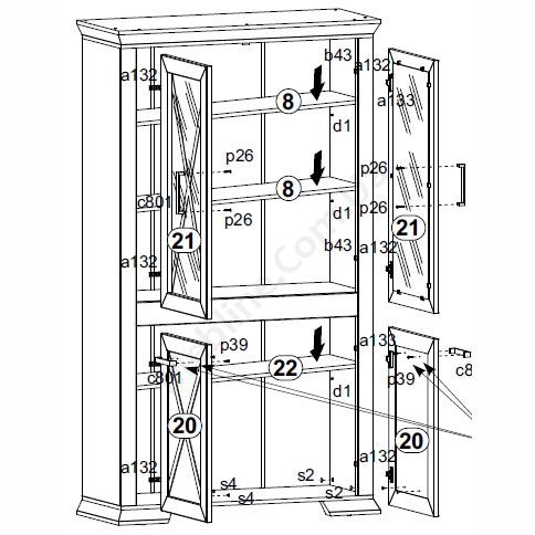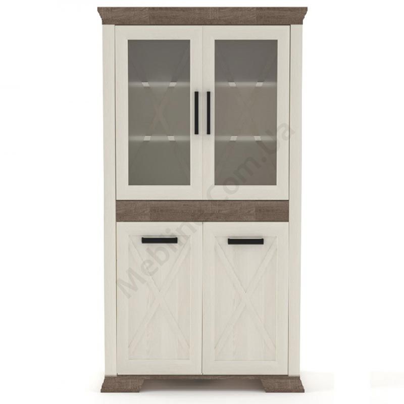 Вітрина зі скляними та глухими дверцятами.