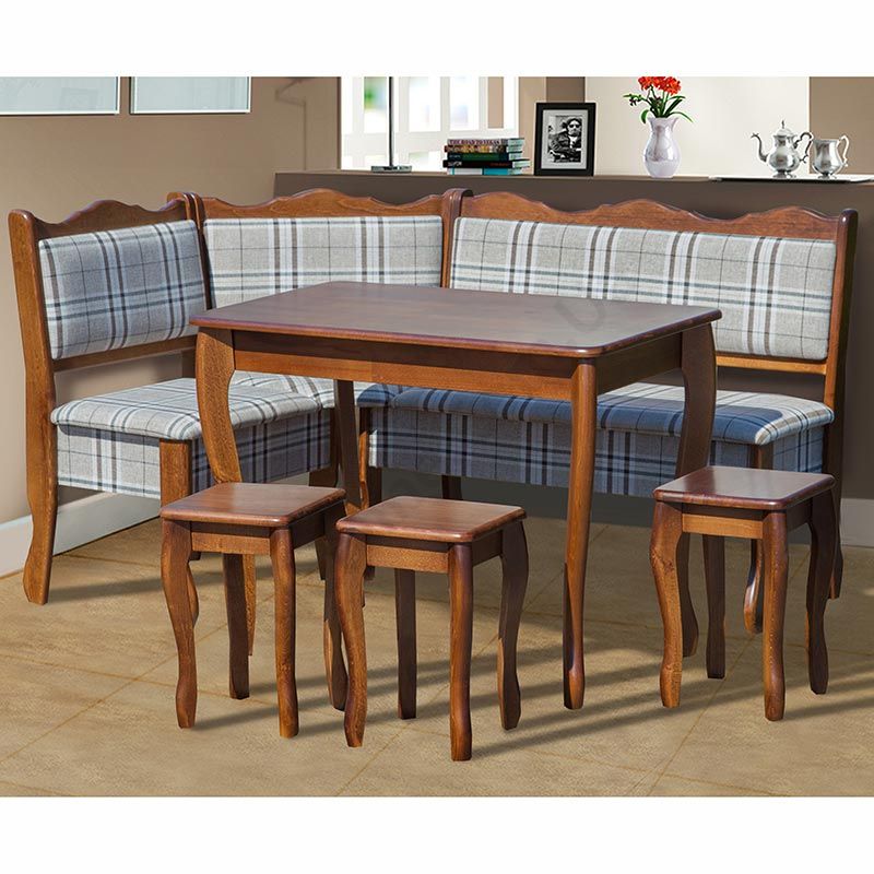 Кухонний комплект, що складається зі столу, м’якого куточка та табуреток.