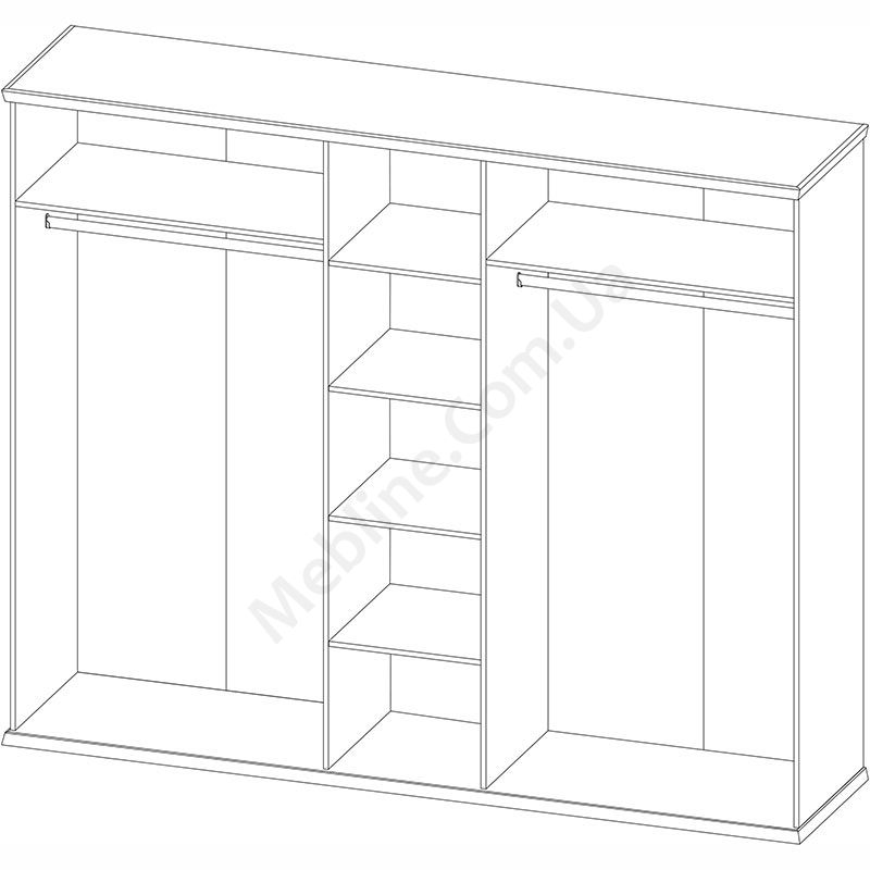 - За двома лівими та двома правими дверцятами штанга для одягу та верхня полиця.