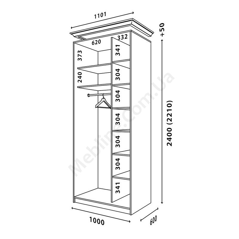 - Шафи можуть бути висотою 2400 або 2200 на вибір.