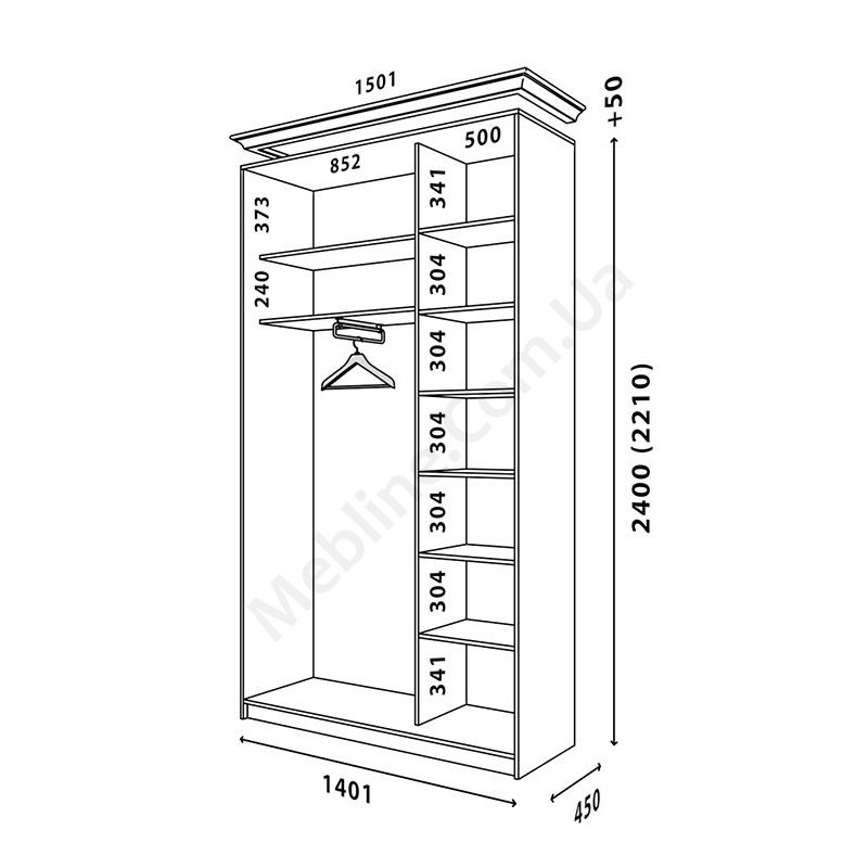 - Шафи можуть бути висотою 2400 або 2200 на вибір.