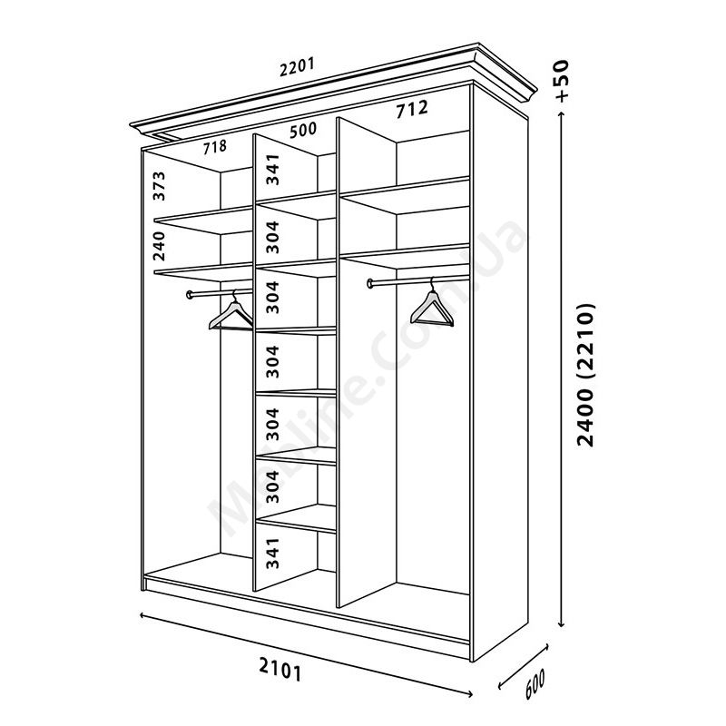 - Шафи можуть бути висотою 2400 або 2200 на вибір.