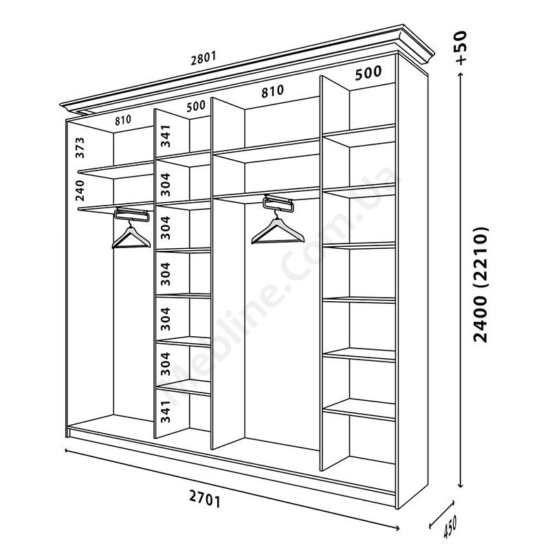 - Шафи можуть бути висотою 2400 або 2200 на вибір.