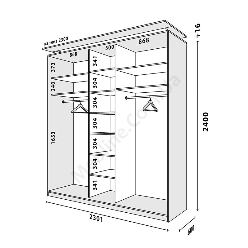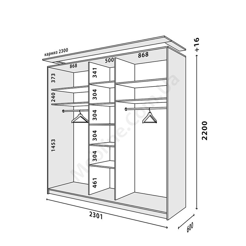 У магазині Ви можете купити Шафа-купе 2300х600 Стандарт за доступною ціною та доставкою по всій Україні. Обирайте Модульна шафа-купе від фабрики VIP-Master для облаштування передпокою, вітальні, спальні в інтернет магазині меблів.