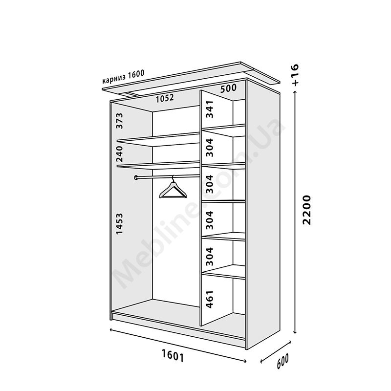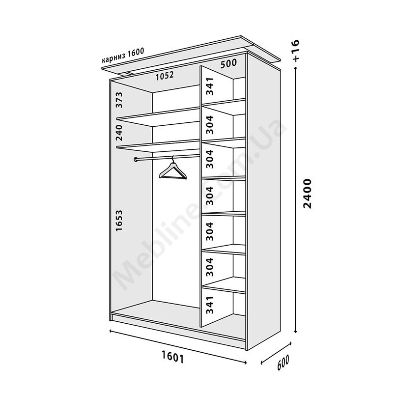 Дводверна шафа-купе шириною 160 см, глибиною 60 см, висотою 220 чи 240 см