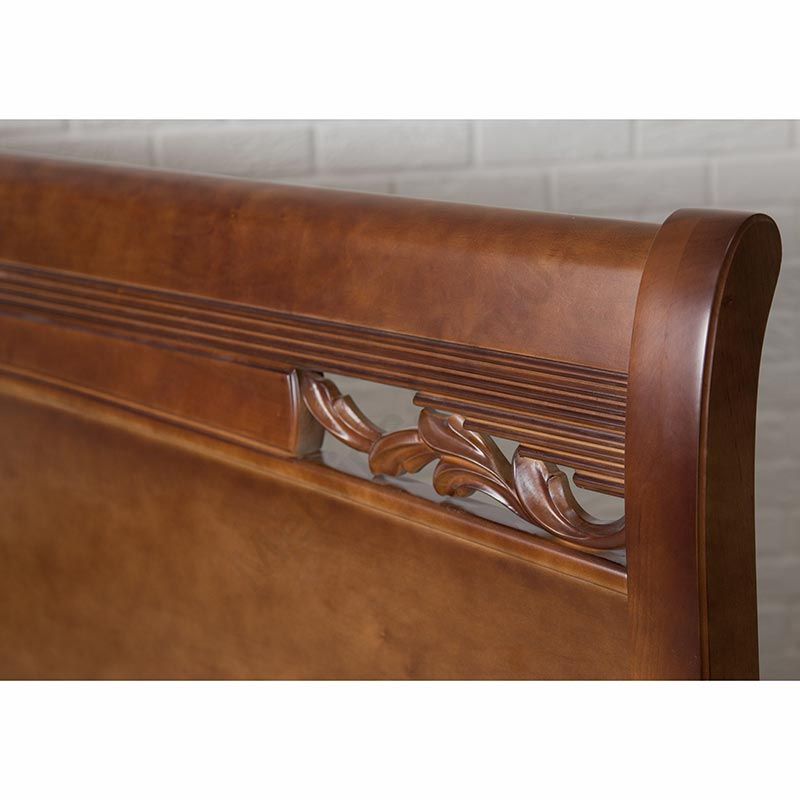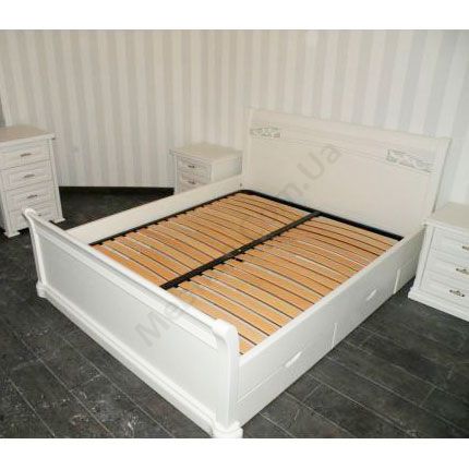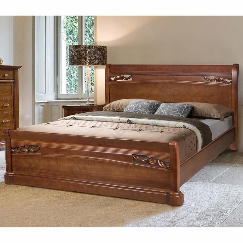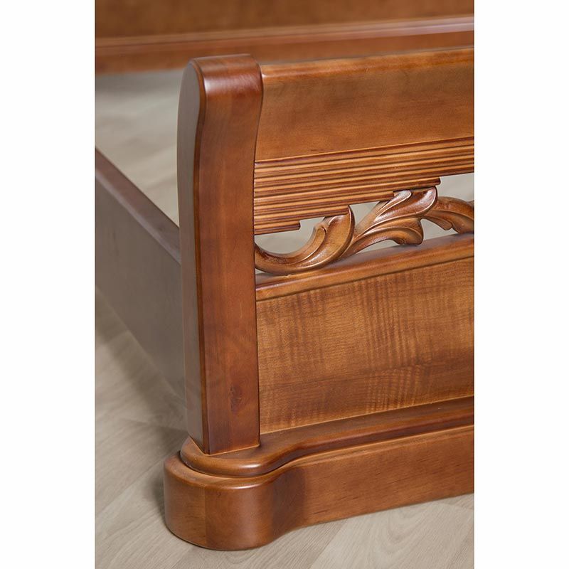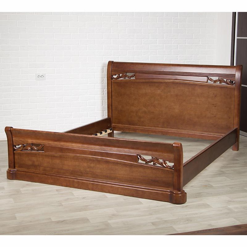 Двоспальне дерев’яне ліжко з твердим узголів’ям.
