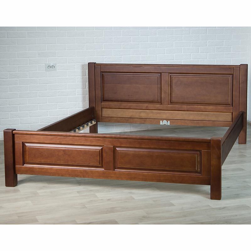 Двоспальне дерев’яне ліжко з твердим прямим узголів’ям.